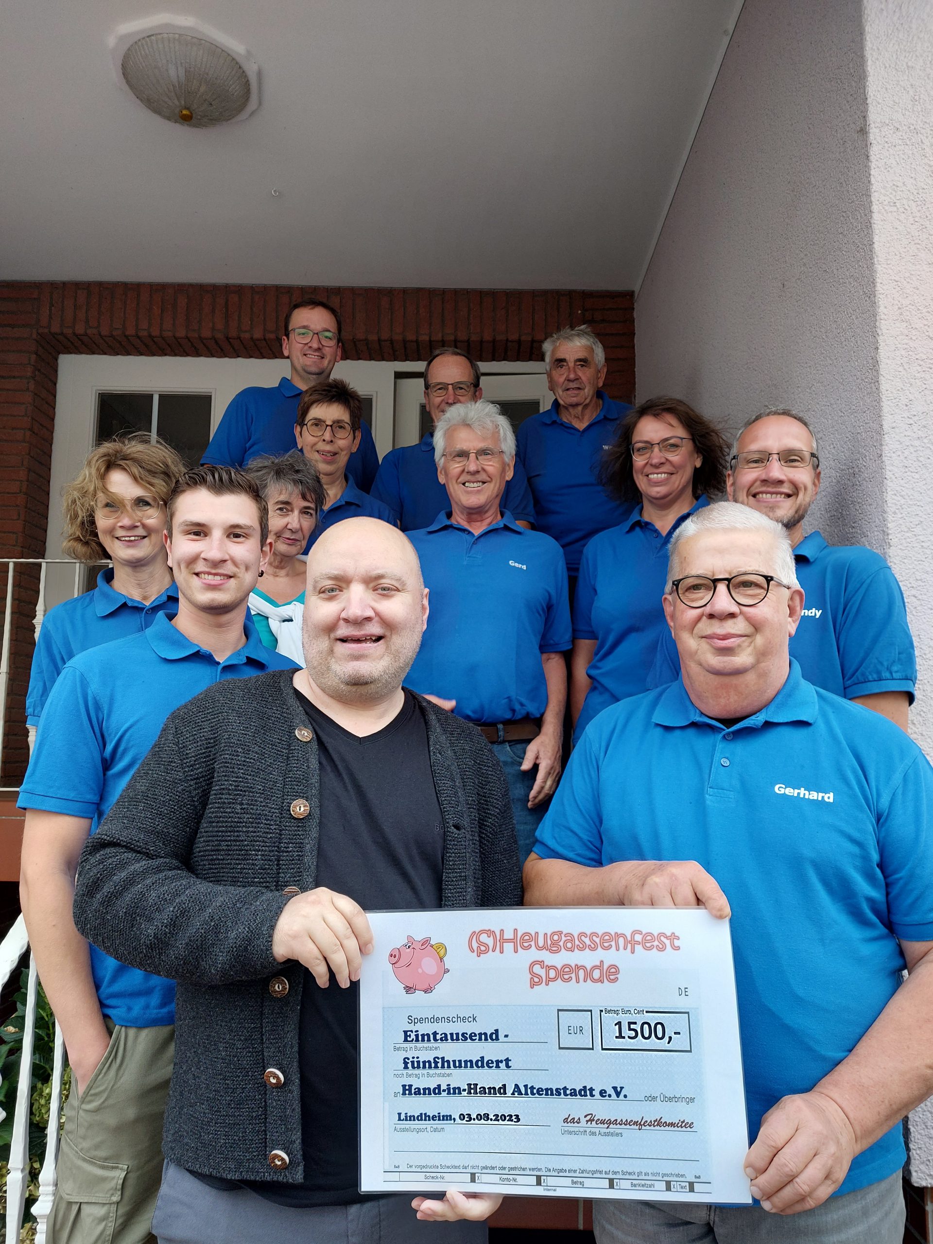 Und so lud das sogenannte „Heugassenfestkomitee“ den Altenstädter Verein zur Spendenübergabe nach Lindheim ein. Beim gegenseitigen Austausch wurde von den Betreuungsfällen von Hand-in-Hand berichtet und die Geschichte des Straßenfests erzählt.